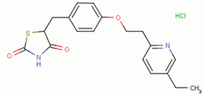 Another Name : [5-[[4-[2-(5-Ethyl-2-pyridinyl)ethoxy]phenyl]methyl]-2,4-]thiazolidinedione hydrochloride Perform Standard: CP2010 CAS_NO.:112529-15-4 Mol Structure: Mol Fm:C19H20N2O3S·HCl Mol Wt : 392.90 Chal:White crystalline powder Application:A new generation of type 2 diabetes treatment drug
